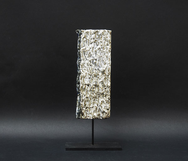 In the 'Frontality' series, I experiment creating stoneware by accumulation. From this superimposition of primary elements, a shape, an entity vibrations follow. As the hours to days, this unique parts are added to each other vertically and then the part is tilted.