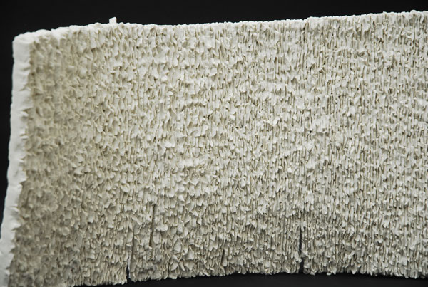 propose une expérimentation de l'accumulation. De ces assemblages d'éléments primaires découlent une forme, des vibrations, un tout. Comme les heures aux jours, ces parties uniques sont ajoutées les unes aux autres à la verticale puis la pièce est basculée.